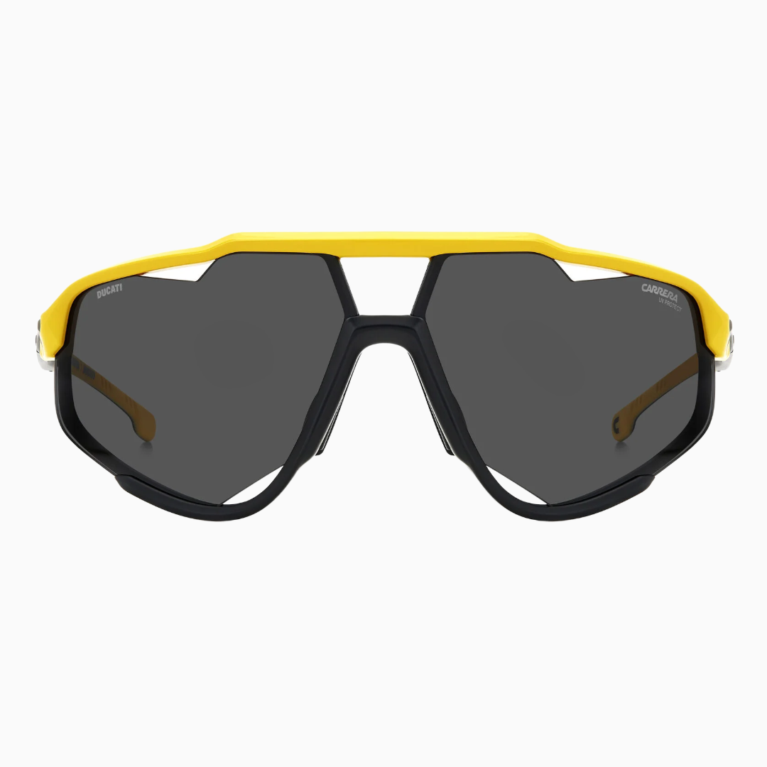 Почувствуйте дух скорости и свободы с солнцезащитными очками CARRERA DUCATI CARDUC 055/S в цвете YELLOW BLACK! Модель создана в рамках коллаборации Carrera и Ducati — для тех, кто ценит спортивный шик и передовые технологии.