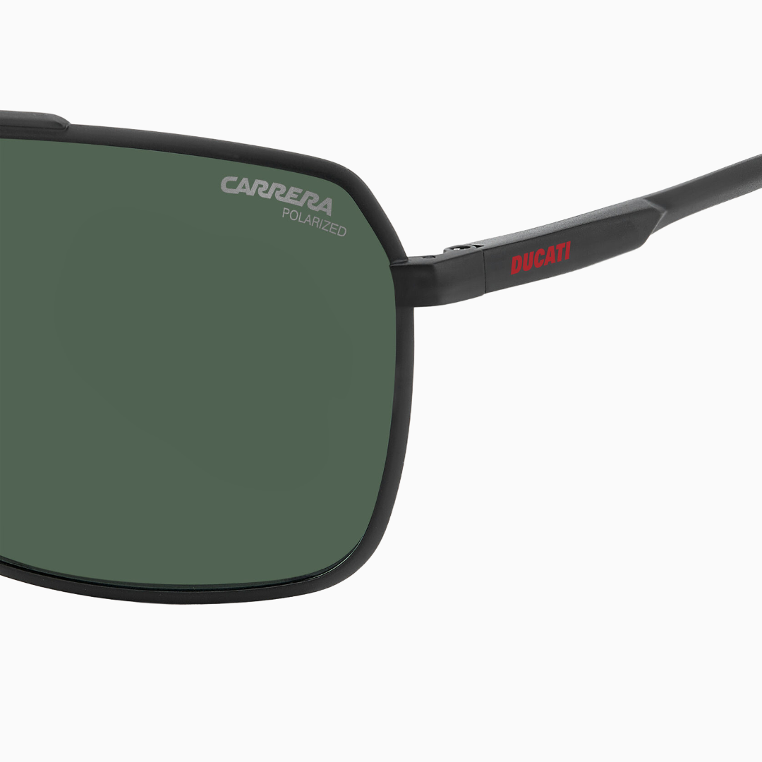 Стильные мужские солнцезащитные очки CARRERA DUCATI в матово‑чёрной оправе — выбор тех, кто ценит итальянский дизайн, технологичность и дух спортивного соперничества. Модель создана в коллаборации брендов Carrera и Ducati: вдохновение дизайнеры черпали у мотоцикла Ducati Panigale V4.